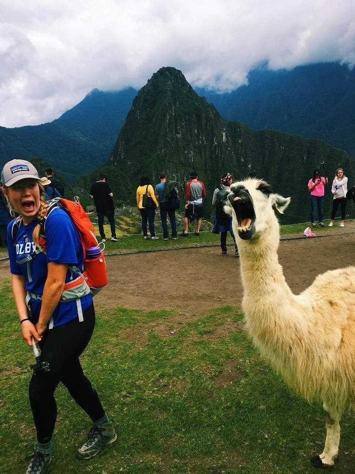 The scenery by itself is reason enough for us to add this picture to the list. It’s a stunning view and creates an ideal photo opportunity. However, what’s happening in the foreground deserves attention as well. This llama was clearly displeased when the photographer attempted to capture an image. In the photo, it’s evident that the llama has uttered a loud orgle, which startled the nearby girl. It may look as though both the girl and the llama are shouting for the picture, but the girl is genuinely frightened, which is why she screamed.