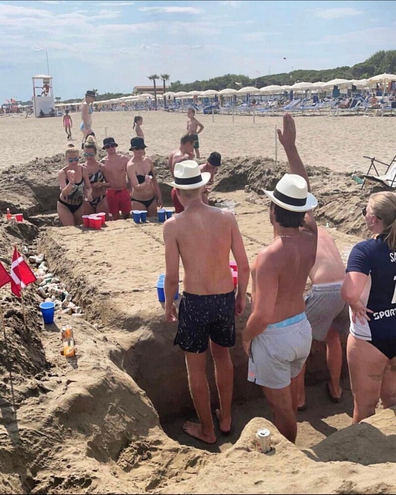 If you’ve ever attended a teen party, you know that beer pong is one of the most entertaining activities at such gatherings. However, you can also enjoy a game of beer pong at the beach, which you might call beach pong. If you’re thinking you need a table to play, the image above proves otherwise. All you need to do is turn the beach sand into a large table for your pong game. Given that small children can build castles with beach sand, creating a flat table shouldn’t be much trouble.