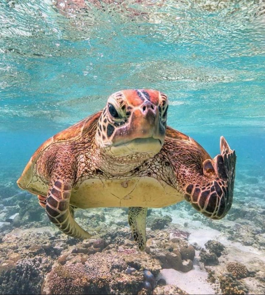 The water appears very clean and beautiful, but the turtle doesn’t seem too happy with the photographer. One would think a turtle living in such pristine waters would be content. However, the way the turtle is looking at the cameraman makes it clear that it isn’t pleased with the intrusion. It wants the cameraman to leave as quickly as possible. The turtle seems to be expressing something stern with its left limb as well. We hope the photographer heeded the turtle’s warning and departed its habitat promptly.