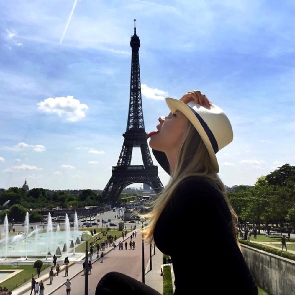 This is another fun vacation photo when it comes to holiday antics. However, that’s not the usual way to take a photo with the Eiffel Tower. Perhaps this girl was traveling alone or with friends. If she was with a romantic partner, it would have been an ideal moment for a kiss under the Eiffel Tower to create an everlasting memory. That photo could have been displayed in your living room, showcasing the romance between you and your partner to everyone. Regarding this photo, it appears that the tongue aligns perfectly with the Eiffel Tower, so the photographer did a great job with this shot.