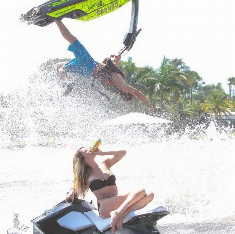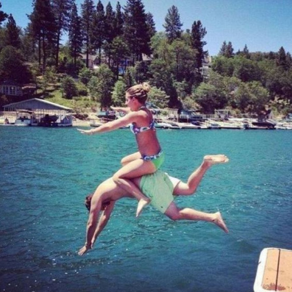 This picture might not be something you’d show your grandkids in the future, but it is a masterpiece. The image resembles a beverage commercial. If I could recreate one photo with my partner, it would be this one. Action, romance, a beautiful background, and splashing water; this photo has everything. It’s unclear whether it was planned or spontaneous, but it does look like a choreographed photo. Or perhaps it’s just a couple enjoying the time of their lives on a summer holiday. We just hope the guy wasn’t injured doing that stunt.