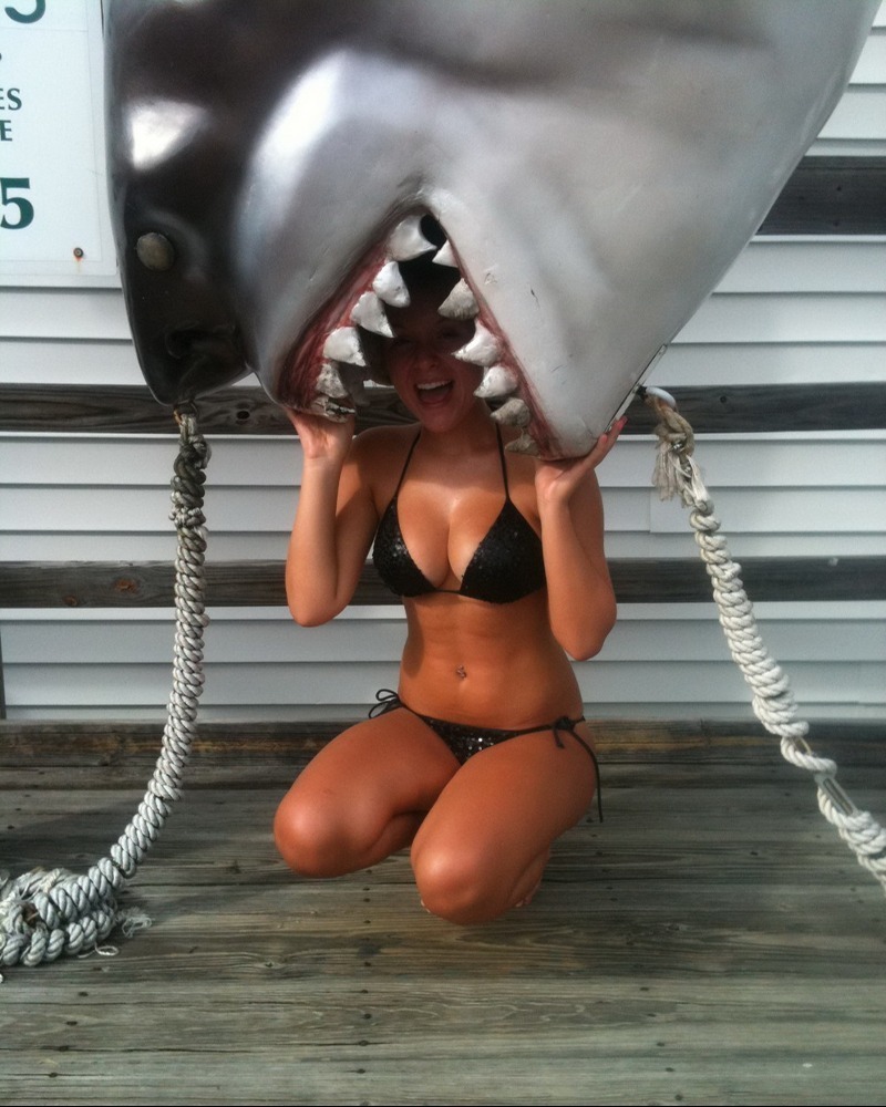 It appears to be the mechanical shark from the movie JAWS, but this still seems like a risky situation. What if the shark’s mouth closes? It could injure her. Hopefully, she knows what she’s doing. She looks very attractive in that bikini, so maybe the shark thinks it has a chance. Regardless, she ended up with a great photo that she can frame and display. It would make for an interesting conversation piece.