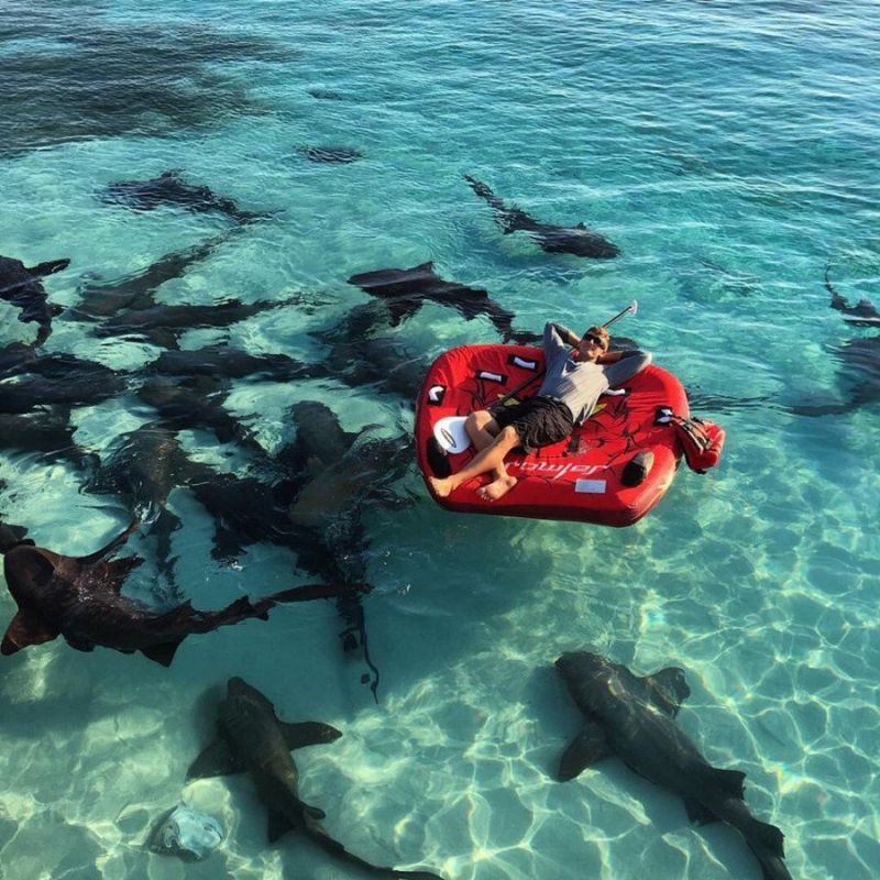 With water as clear as this, how can you not feel afraid with all those sharks beneath? However, if you’re this guy who thinks he’s the king of sharks, you don’t get scared of some sharks waiting for you to make one wrong move. This guy appears to be having fun in shark-infested waters, but we can only hope he thought it through because even if he does nothing, the sharks could still flip his small inflatable boat, and that wouldn’t end well for him. So, we can only assume the guy came to his senses and left the water as soon as possible.