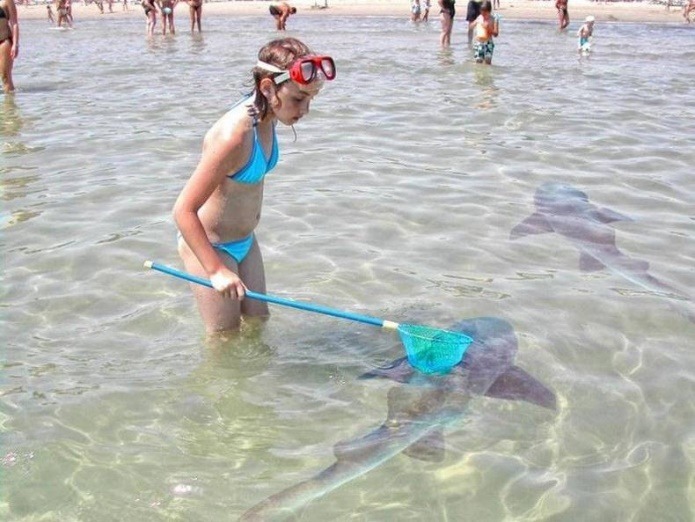 If you’ve ever asked your parents to have a pet, they probably told you it’s a big responsibility because you have to feed them, care for them, and keep them happy. However, we’re sure this girl’s parents would not approve of her new pet. It’s not really her pet, but the way she feels at ease around that shark suggests they’ve formed a sort of friendship. We’re not sure what this girl is trying to achieve here, but it seems like she’s attempting to pet the shark with that net.