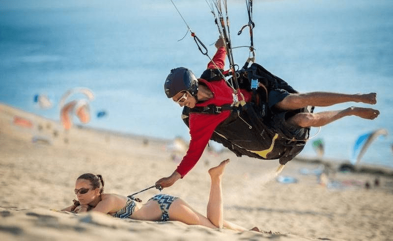There are numerous things that could potentially go wrong here, and this isn’t just about the girl, but the guy too. It appears the guy is airborne with the aid of a small air balloon or parachute, but his actions might lead to trouble. He is tugging at the string of the girl’s bra. Hopefully, they are acquainted; otherwise, this could easily lead to legal issues. Regardless of the situation, the guy seems to be in a peculiar position, and if he falls after tugging the string, it’s hard to imagine how the girl will react.
